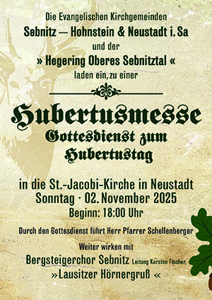 Veranstalter: Evang. Kirchgemeinden Sebnitz-Hohnstein & Neustadt in Sachsen und der "Hegering Oberes Sebnitztal"