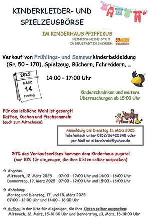 10:00 - 18:00 Uhr, in der Neustadthalle, Johann-Sebastian-Bach-Straße 15