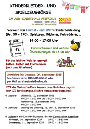 Verkauf von Herbst- und Winterkinderbekleidung (Gr. 50 - 170), Spielzeug, Büchern, Fahrrädern uvm.