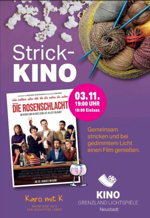 Gemeinsam stricken und bei gedimmtem Licht einen Film genießen mit Karo mit K von Raum und Zeit für kreatives Leben.