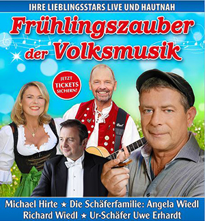 Die größten Hits aus Volksmusik und Schlager auf einer Bühne gibt es live zu erleben beim Frühlingszauber der Volksmusik.