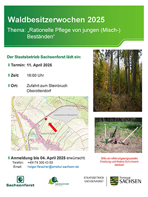 der Staatsbetrieb Sachsenforst lädt ein zum Thema: "Rationelle Pflege von jungen (Misch-) Beständen"